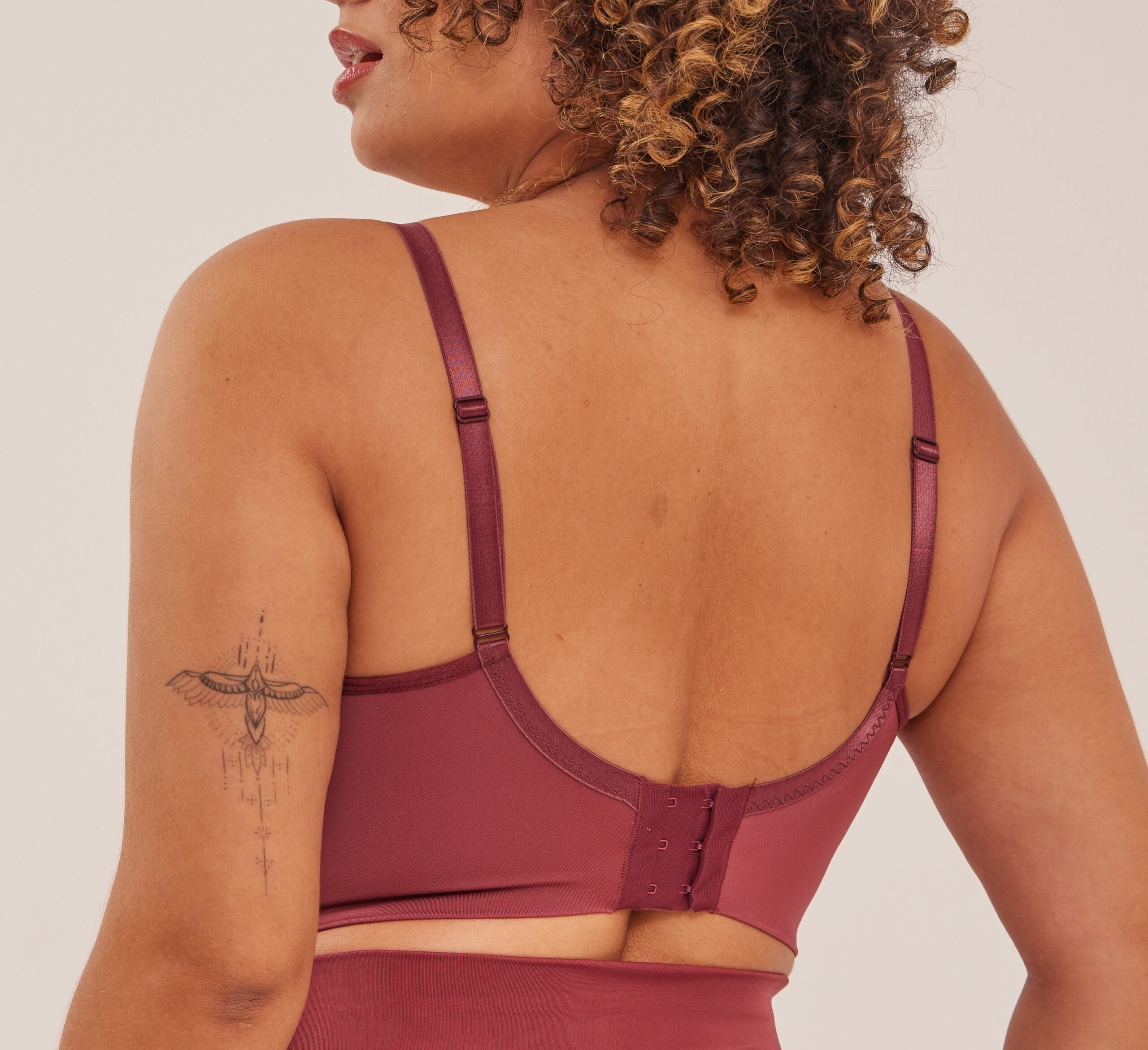 Cropped reforçado em cetinete power com tecido duplo e barbatanas nas laterais.